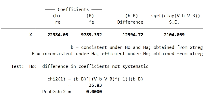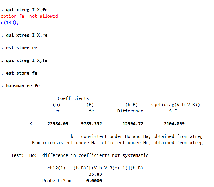 今天对面板数据的门槛变量进行了内生性检验(hausman),检验结果是P=0