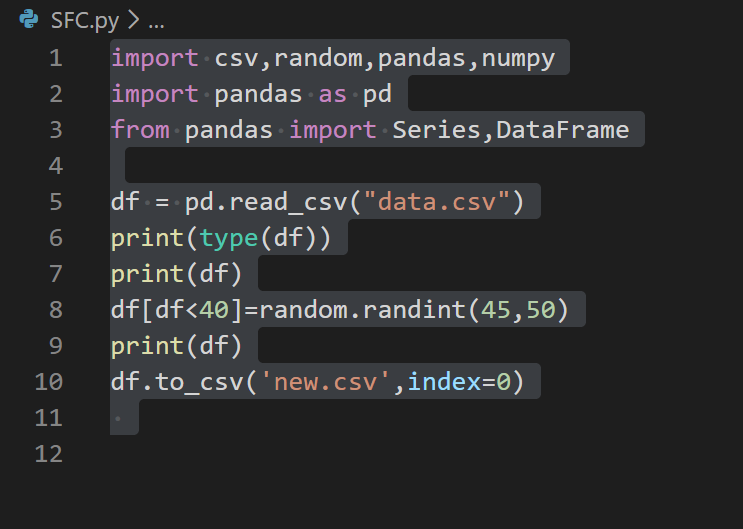 test.csv数据如下: old other 0 50 51 1 39 40 2 40 41 3 24 25 4 50 51 5 40 41 6 35 36 7 50 51 8 50 51 9 50 51 ************************************************** import pandas as pd import random df=pd.read_csv("test.CSV") print(df) print("*"*50) df["new1"]=df[df.old=40].old print(df) print("+"*50) df=df.fil ...