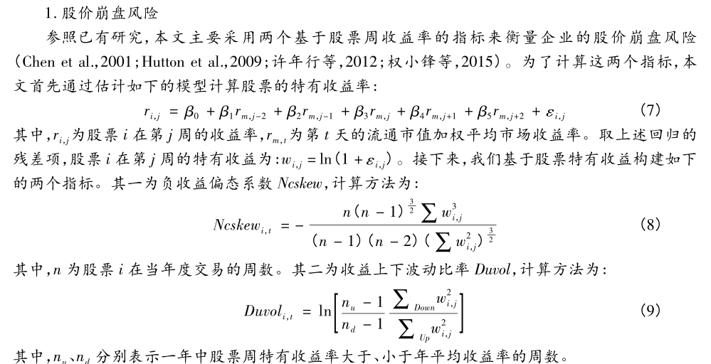(Chen et al.,2001;Hutton et al.,2009;许年行等,2012;权小锋等,2015)。为了计算这两个指标,本