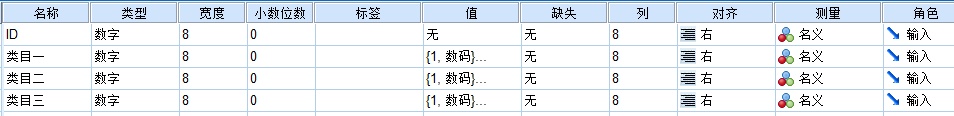 想请大神们帮我看看,下面的实验设计数据格式对不对。我查了一些案例,里面的变量性质都是不一样的。比如变量一身高、变量二体重等。但我录入的变量,变量一、变量二等,数值标签都是一样的,不知道按照这样的格式,导出数据分析时,会有问题吗