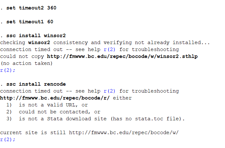 安装新指令是总是报错,按照提示更改了时间限制还是安装不了,电脑联网了,新手学stata,希望大佬指点