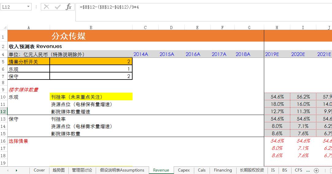 2019年财务数据-分众传媒财务估值建模模型(保守情况).xlsx
