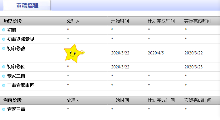 jiyuken 发表于 2020-5-22 14:31 感觉“专家二审”不太像是外审。 专家三审更像是外审审回。 我也是从初审过了一个多月直接进入专家三审, ...