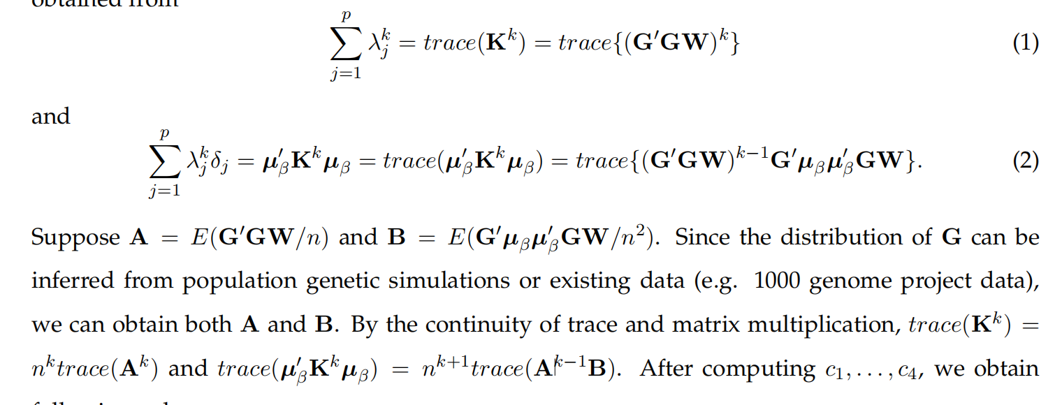 在图片中说由矩阵的迹和乘法的连续性知trace(K^k)=n^k*trace(A^k),不太明白为什么成立