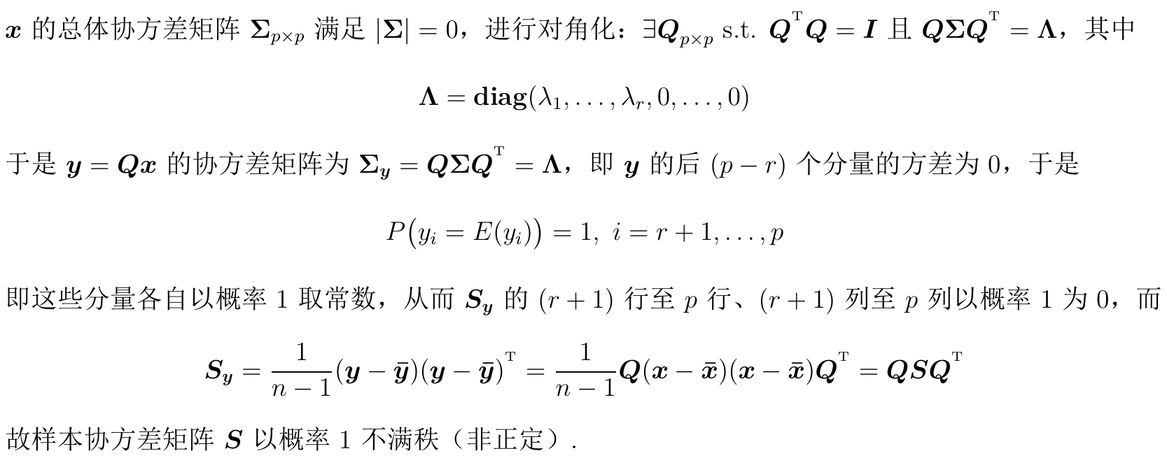 随机向量协方差矩阵不满秩,则样本协方差矩阵以概率1不满秩的简要证明