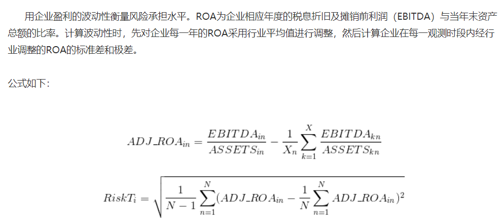 请教一下,小弟最近在做一篇关于企业风险承担的文章,即如下计算的RISKT1作为被解释变量,其定义就是ROA波动性即标准差,但做出来取对数时比较显著,不取对数结果很不好。我疑问的是取对数是为了消除异方差影响,但是这个变量本身就是标准差形式,总感觉取对数做心里不太踏实。如果可以取对数,怎么解释呢?谢谢各位大佬!
