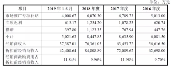 5. 关于专项返利的问题,这个应该是经销商激励最常见的政策,发行人金额倒不是非常大,每年保持在1000万元左右的金额。具体的会计处理也是比较简单,就是直接冲减销售收入,不过返利的计算标准倒是一个问题。