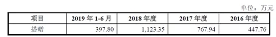 报告期内,公司搭赠金额情况如下: