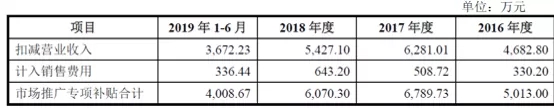 公司报告期内扣减营业收入的市场推广专项补贴与计入销售费用的市场推广专项补贴情况如下: