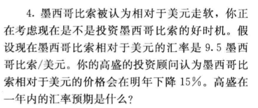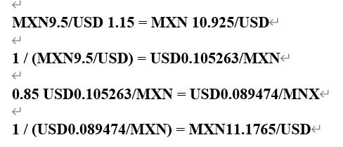 墨西哥比索相对于美元价格下降,为什么不是9.5MXN/USD*(1-15%)?