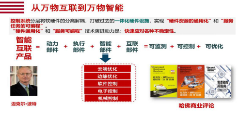 对于上述命题,现在至少有一个明确答案,就是百度董事长兼CEO李彦宏在2019年世界互联网大会上提出的“智能经济”。李彦宏认为,“新基建“将加速智能经济的发展,不仅有力推动中国经济高质量发展,更将为中国在未来引领智能经济时代奠定坚实的基础。全球竞争理论之父、哈佛商学院教授迈克尔•波特主要专业是研究企业竞争和和国家竞争,他去年在《哈佛商业评论》发表文章“从万物互联到万物智能”,详细地论证了的智能技术群落已经成为企业乃至国家竞争的核心要素(如下图)。在数字技术不断融合、叠加和迭代升级中,迎接一个全面感知、可靠传输、智能处理、精准决策的万物智联(Intelligence of Everything)时代。