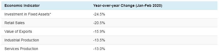 The Economic Impact of COVID-19[size=1.1]China, once the epicenter of the COVID-19 pandemic, appears to be turning a corner. As the number of reported local transmission cases hovers near zero, daily life is slowly returning to normal. However, economic data from the first two months of the year shows the damage done to the country’s finances.