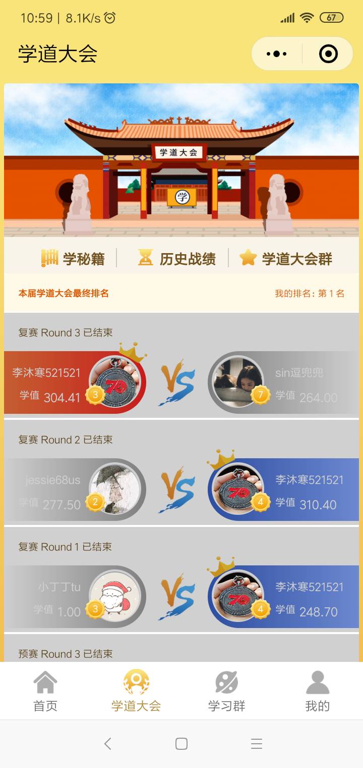 承蒙丁丁兔,老大和兜兜大神荣让,拿到了学道会第一个冠军了!有如此多优秀的朋友,还要继续向大家学习请教了——