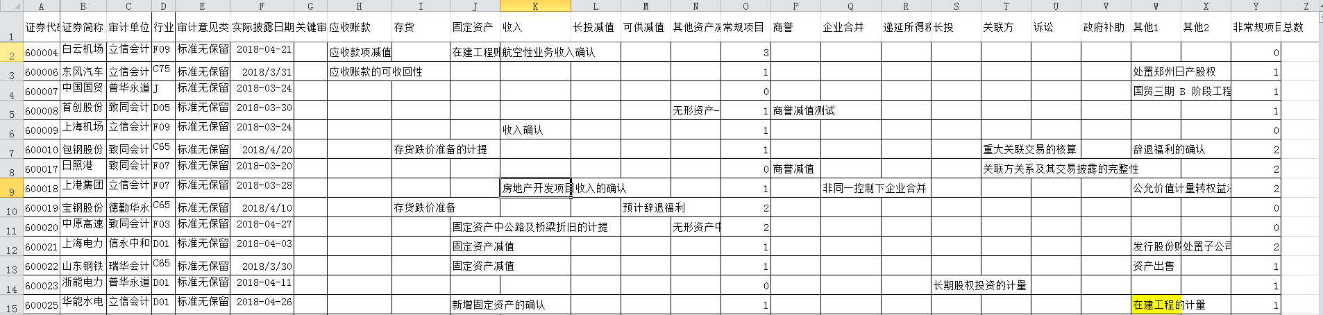 关键审计事项数据整理