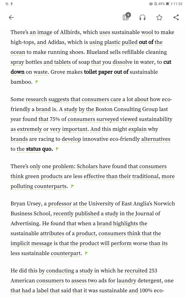 只有一个问题:学者们已经发现,消费者认为绿色产品与他们传统的更具有污染性的同等替代物相比效果没有那么好。