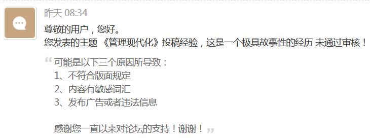 二木夕梦 发表于 2020-3-30 14:12 花了半小时写了一篇投稿经验,竟然没通过审核,真的有点无语凝噎的感觉,不知道触犯了什么?哎