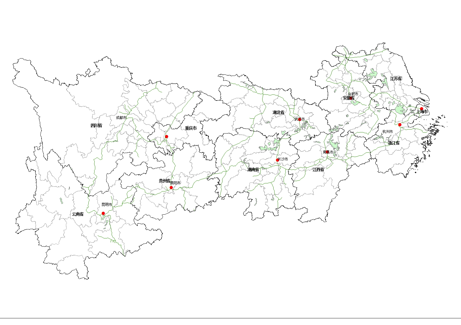 长江经济带地级市shp图和长江、黄河、胡焕庸线shp图