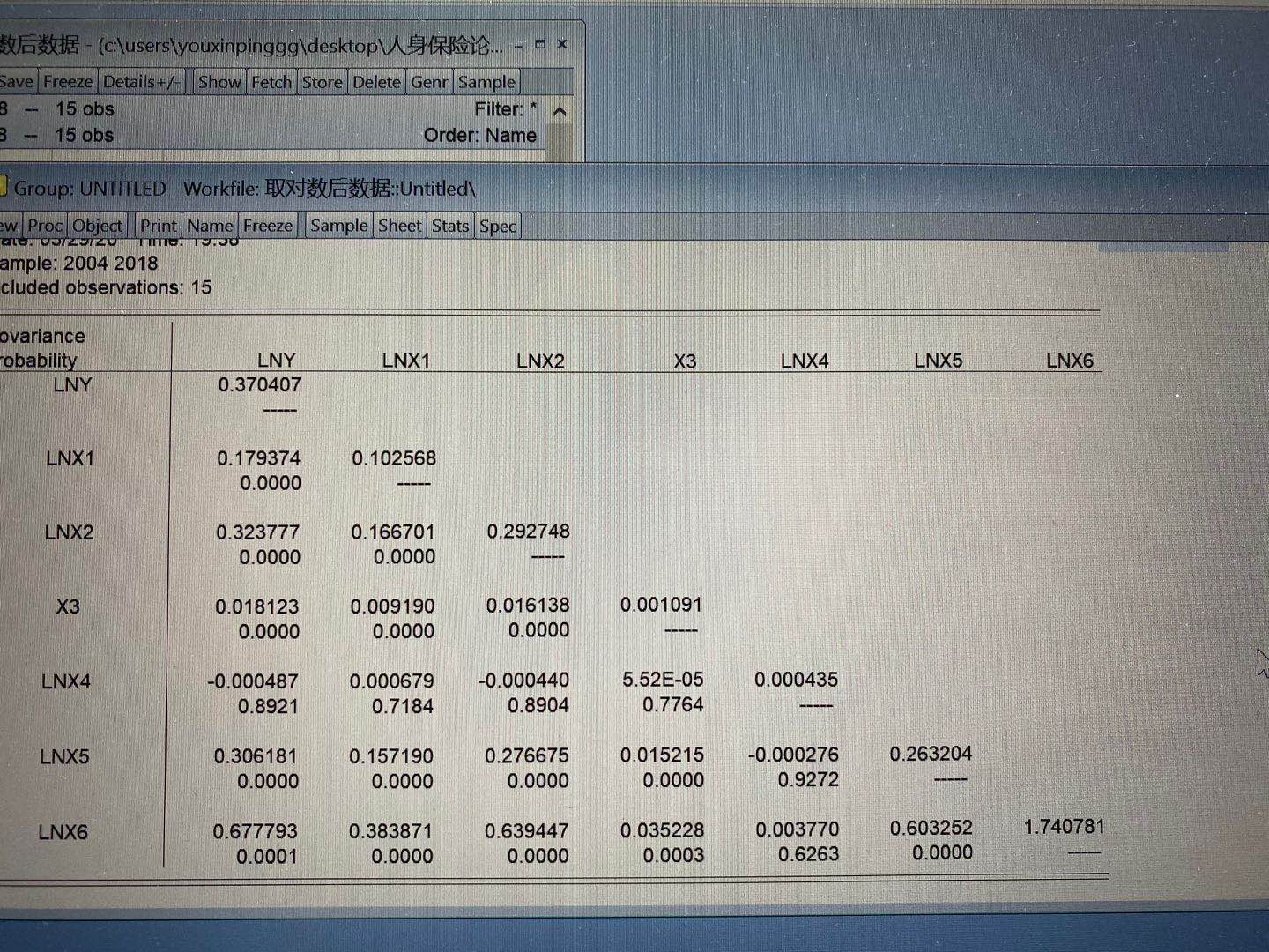 自相关系数矩阵结果怎么看,只有lnx4是不相关的吧