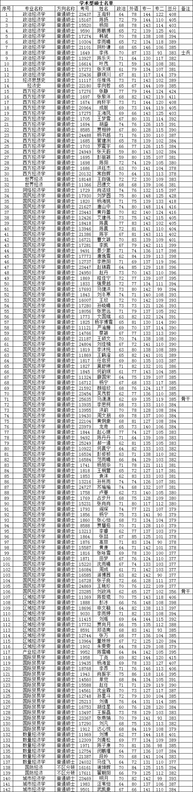 1、学术型硕士各专业复试分数线:政治55分、外语55分、专业一90分、专业二90分、总分377分。