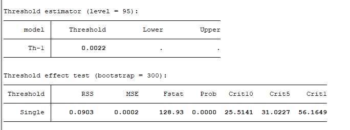 2.未跨越门槛值的时候,核心解释变量的系数这么大,不知道哪里出现了问题。
