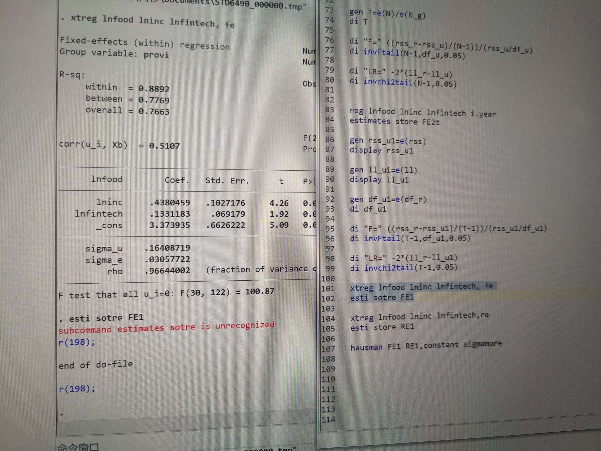 stata中hausman检验出错