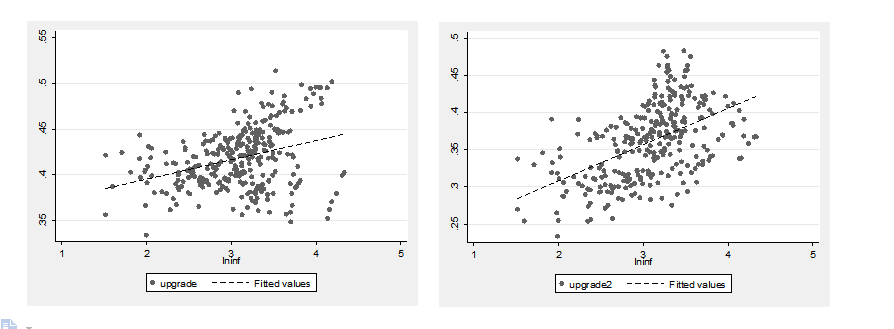 1.为什么散点图明明是正相关关系,而且信息化水平与消费结构升级也应该是正相关关系,但在不加入任何控制变量、时间效应、固定效应的时候,系数为负呢?