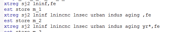 2.在加入二次项的时候,xtreg、xtreg r、xtscc哪一种的结果比较可取?还是模型仍然设定错误需要更正?
