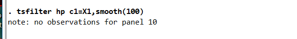 用HP滤波法处理面板出现了no observation for panel是怎么回事呢?处理过一次,都很顺利没问题,这次需要调整再做就出现这个了,请教各位大佬该怎么解决呢?