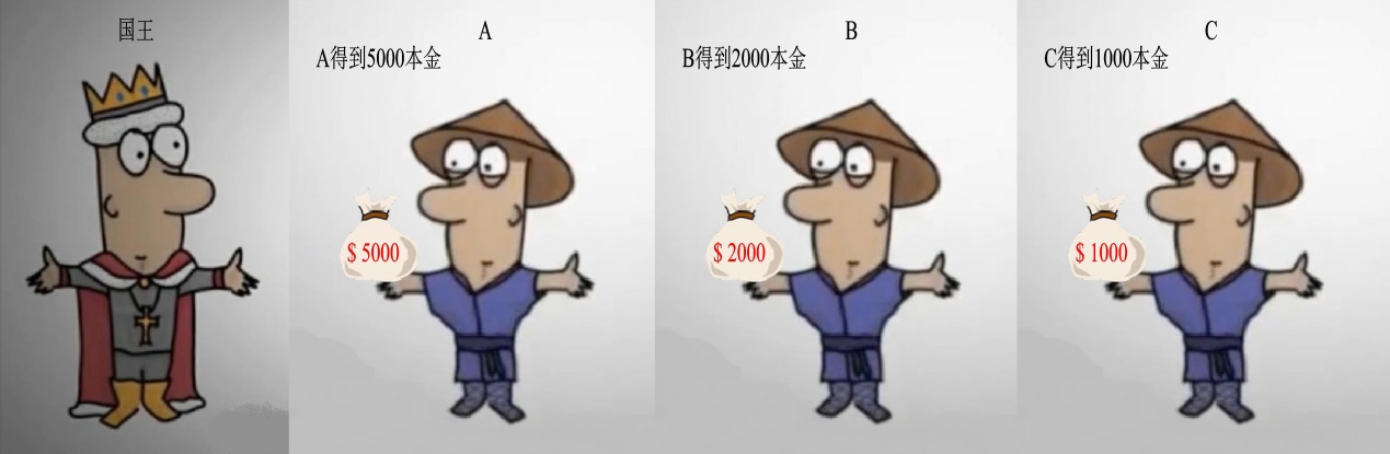 天国又好比一个人要往外国去,就叫了仆人来,把他的家业交给他们。按着各人的才干,给他们银子。一个给了五千,一个给了二千,一个给了一千。就往外国去了。那领五千的,随即拿去做买卖,另外赚了五千。那领二千的,也照样另赚了二千。但那领一千的,去掘开地,把主人的银子埋藏了(如图6所示)。