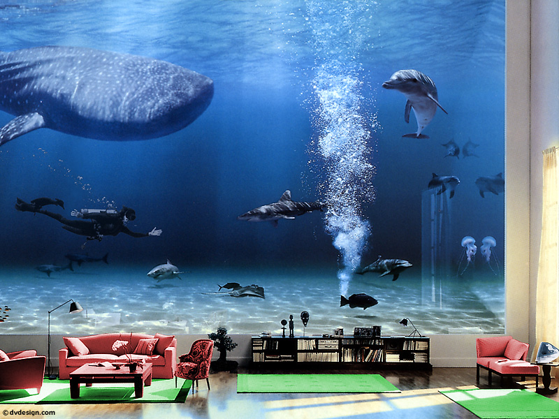 不愧花了这么多钱,客厅跟海底世界似的
