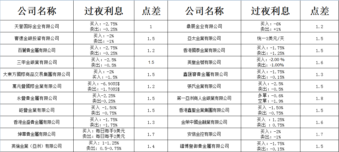 最新最全的一手金银贸易场AA会员平台的点差利息资料分享