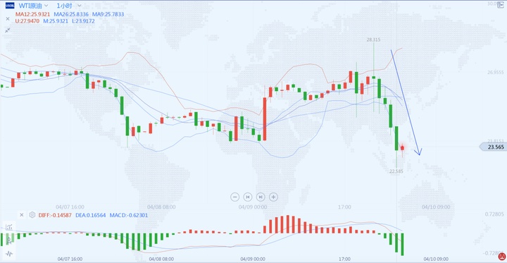 尽管,这一次减产量相当于在全球供应量的基础上减了10%,可这需求量哪里是减少10%,达到70%都有可能,仍然无法弥补需求下滑带来的更严重的影响。隔夜,原油出现大幅下挫,减产计划由于墨西哥的不配合,直接“难产”,加之减产规模并不是很大,谈判也不顺畅,双重压力之下,油价刷新了23美元/桶的阶段性低点。