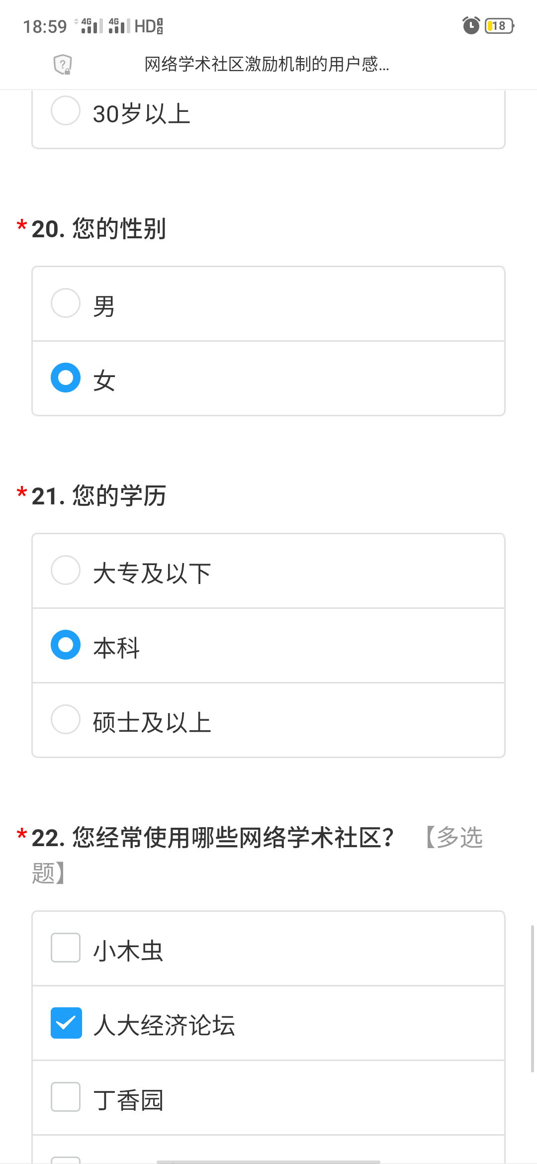 这是一篇关于网络学术社区使用的调查问卷,麻烦各位大佬通过以下链接或扫描二维码填写,1~2min就好!https: ...