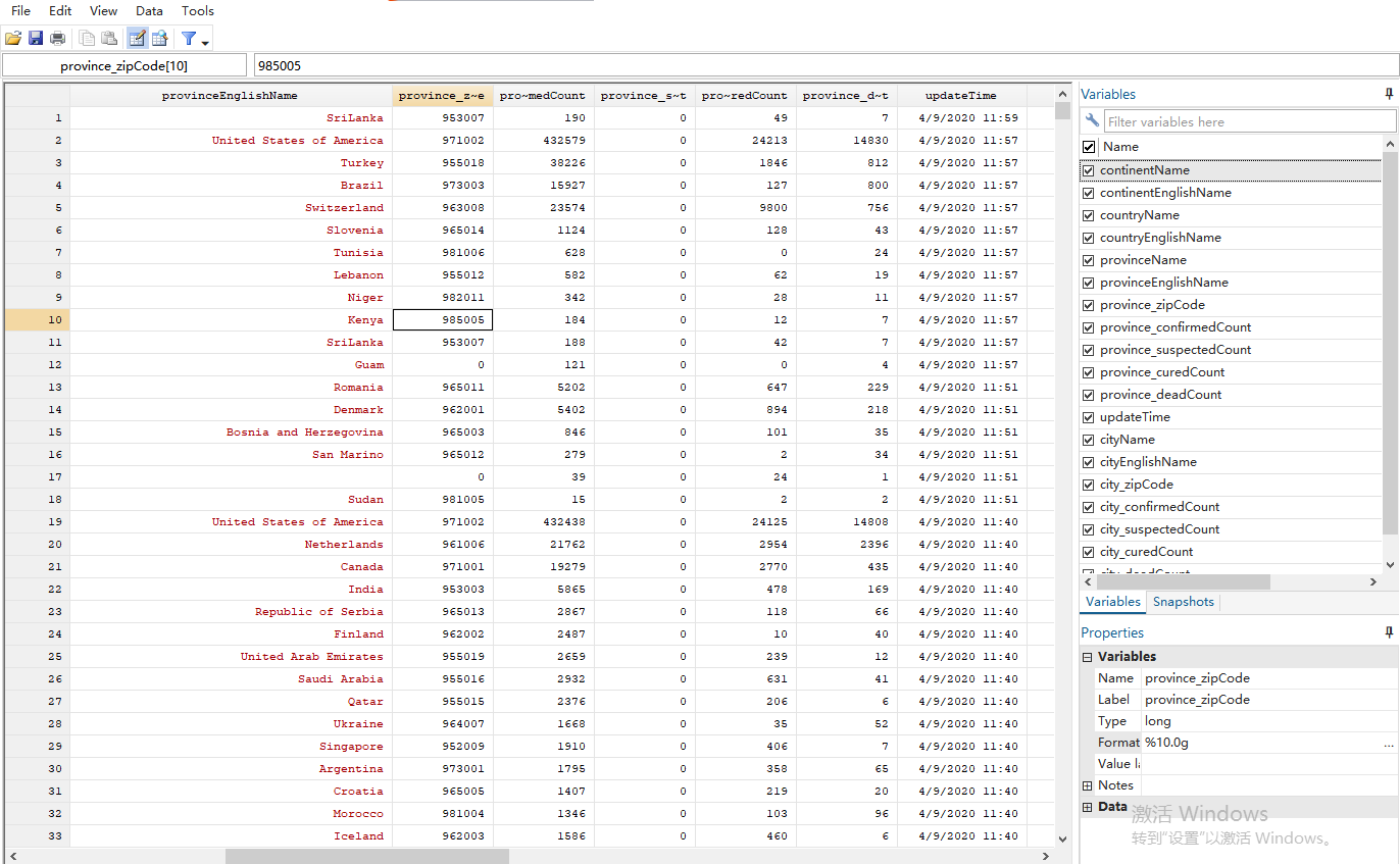 2020.01.22-2020.04.09。部分样本由于官方公布缺失原因导致存在缺漏值,但整体而言,并不影响总体样本量。数据变量包括省份、城市、国家名称,所属地域,确诊人数,无症状感染人数,死亡人数,治愈人数,日期等。可以和各种日度数据进行匹配研究,最近关于疫情的征文铺天盖地,大家都想赶热点发论文,搜集数据不易,收点辛苦费。祝大家发文顺利!!
