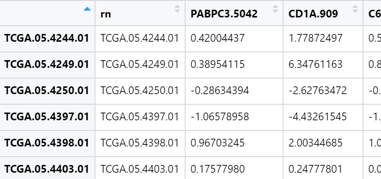 两个数据是这样的,我想让第2个数据变成两个数据公共样本(行名)的形式,最后新数据和第2个格式相同,但是样本是两个数据的共同样本,就是生存分析的数据整理,应该怎么用R实现呢?