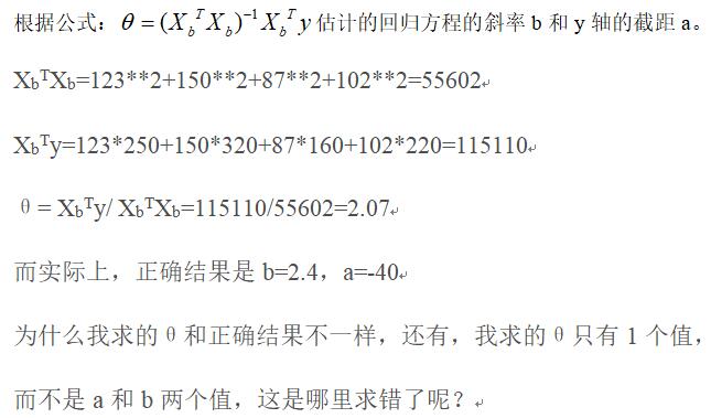 解:本例中只有一个自变量(面积),因此是一个一元线性回归问题,设该一元线性回归的拟合函数为:Y=a+bX