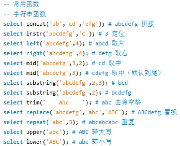 【学习笔记】D13. MySQL又结束了,整理了常用字符串函数、数学函数、日期函数 ...