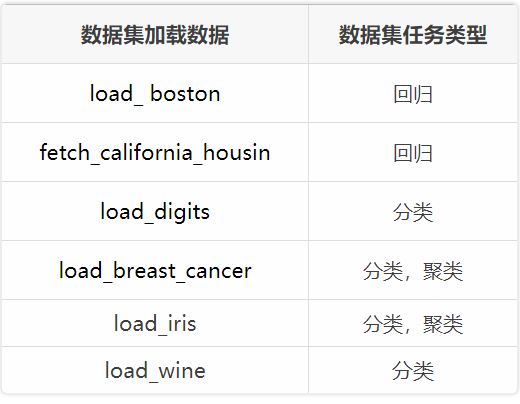 ⭐datasets模块常用数据集的加载函数与解释如下表所示。