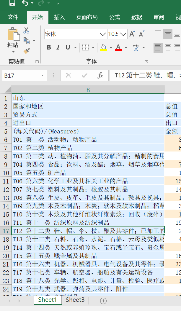 山东商品分类出口额(2019).xlsx