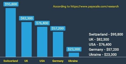 全球软件工程师平均年薪(来源:Mobilunity.com)