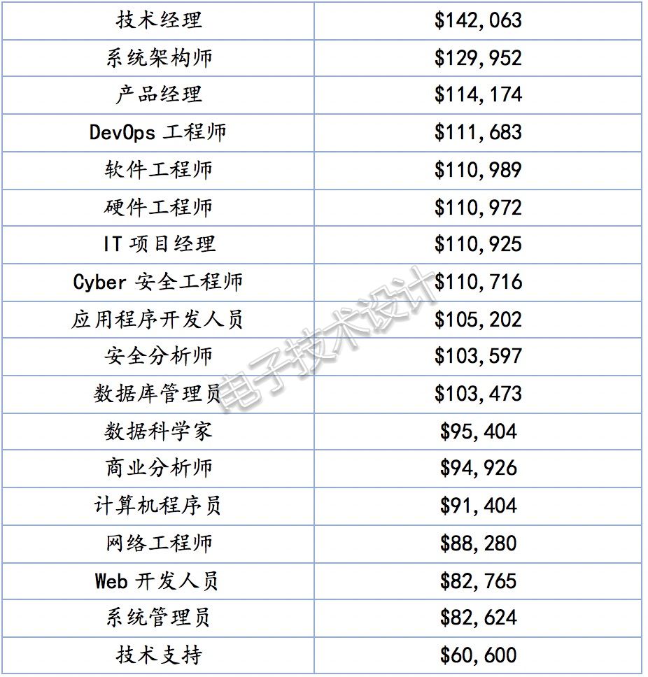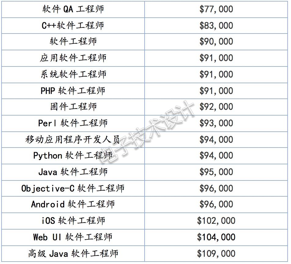 软件工程师与其他IT职位的薪资比较下表比较了美国软件工程师与其它IT工程师的年薪。