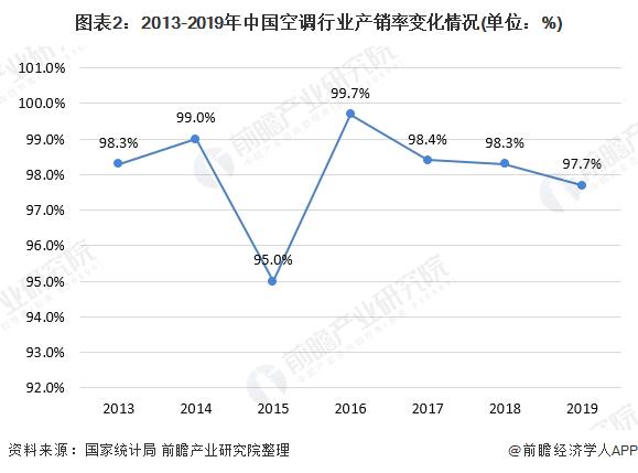 根据国家统计局公布的数据显示,2013-2019年我国空调产量和销量逐年增长,但2017年以来,我国空调销量开始低于产量,行业产销率初年下滑,2019年我国空调产量为21866万台,超出销量500万台,产销率为97.9%,行业存在产能过剩问题。