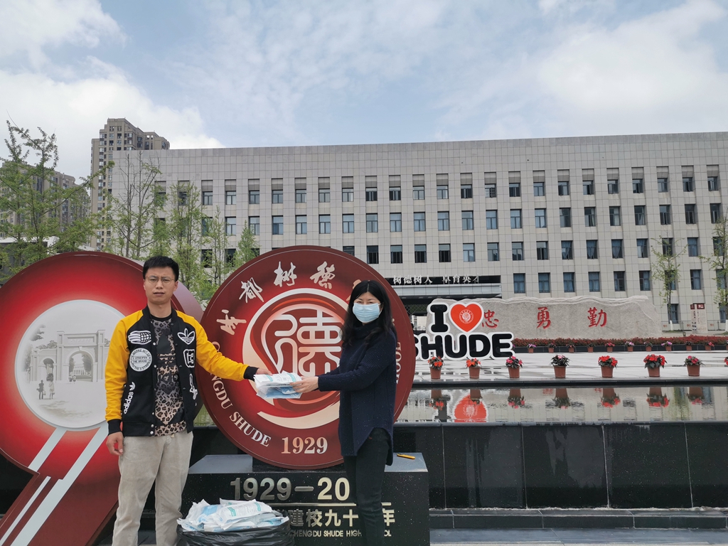 2020年4月13日下午,一场没有注重仪式形式、一切从简的捐赠活动在成都树德中学外国语校区举行。为尽力帮助学校复学做好防疫物资储备,充满大爱情怀、热心公益事业的成都汇好商贸有限公司,向成都树德中学外国语校区捐赠了2000个医用防护口罩。该校夏洪英老师代表学校接受了捐赠,同时表示衷心地感谢。
