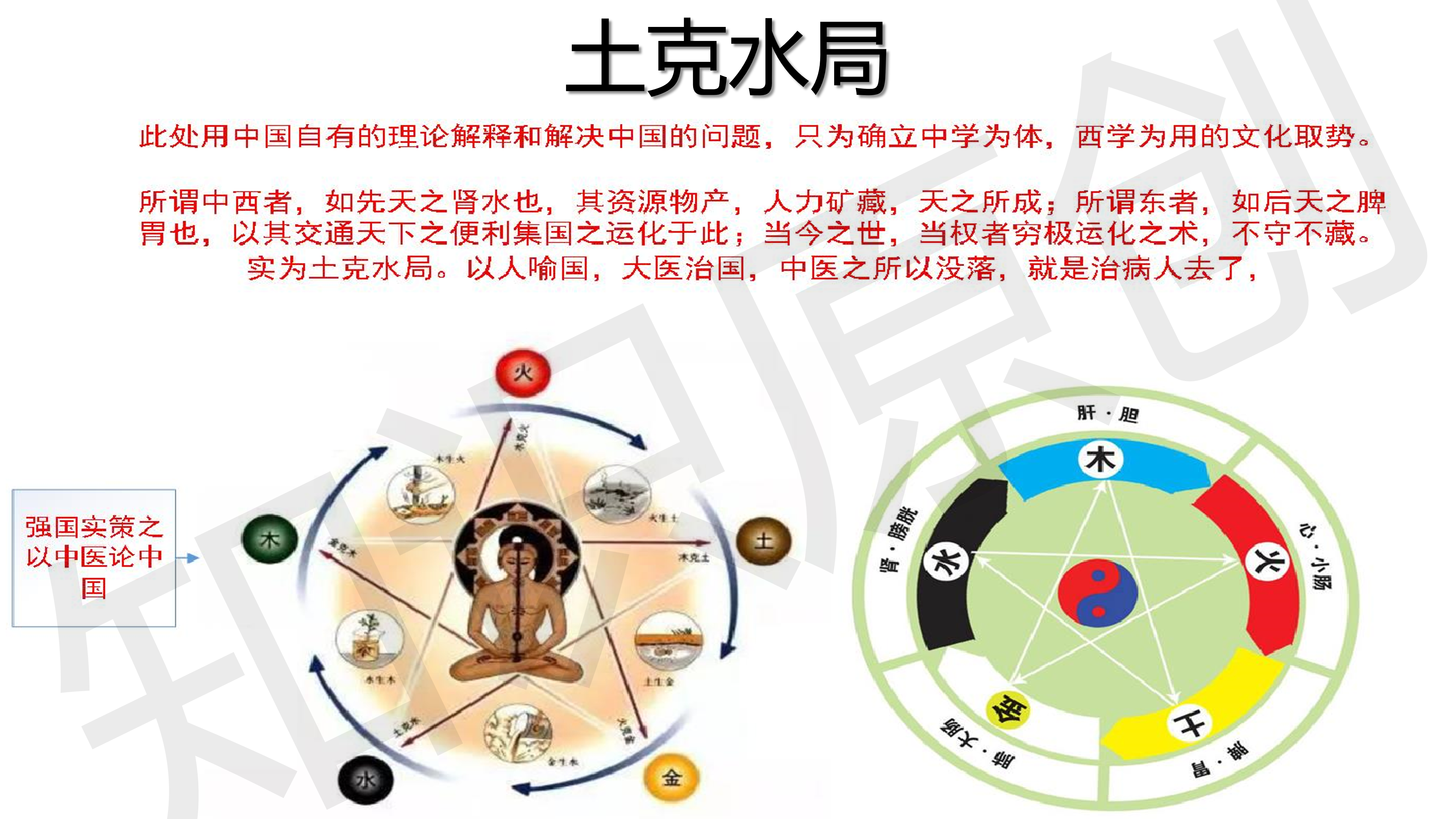 所谓中西者,如先天之肾水也,其资源,其人力,其物力,天之所藏;所谓东者,如后天之脾胃也,以其交通天下之便利集国之运化于此。当今之事,穷极运化之术,这便是土克水局,当务之急就是抑土蓄水,滋水涵木
