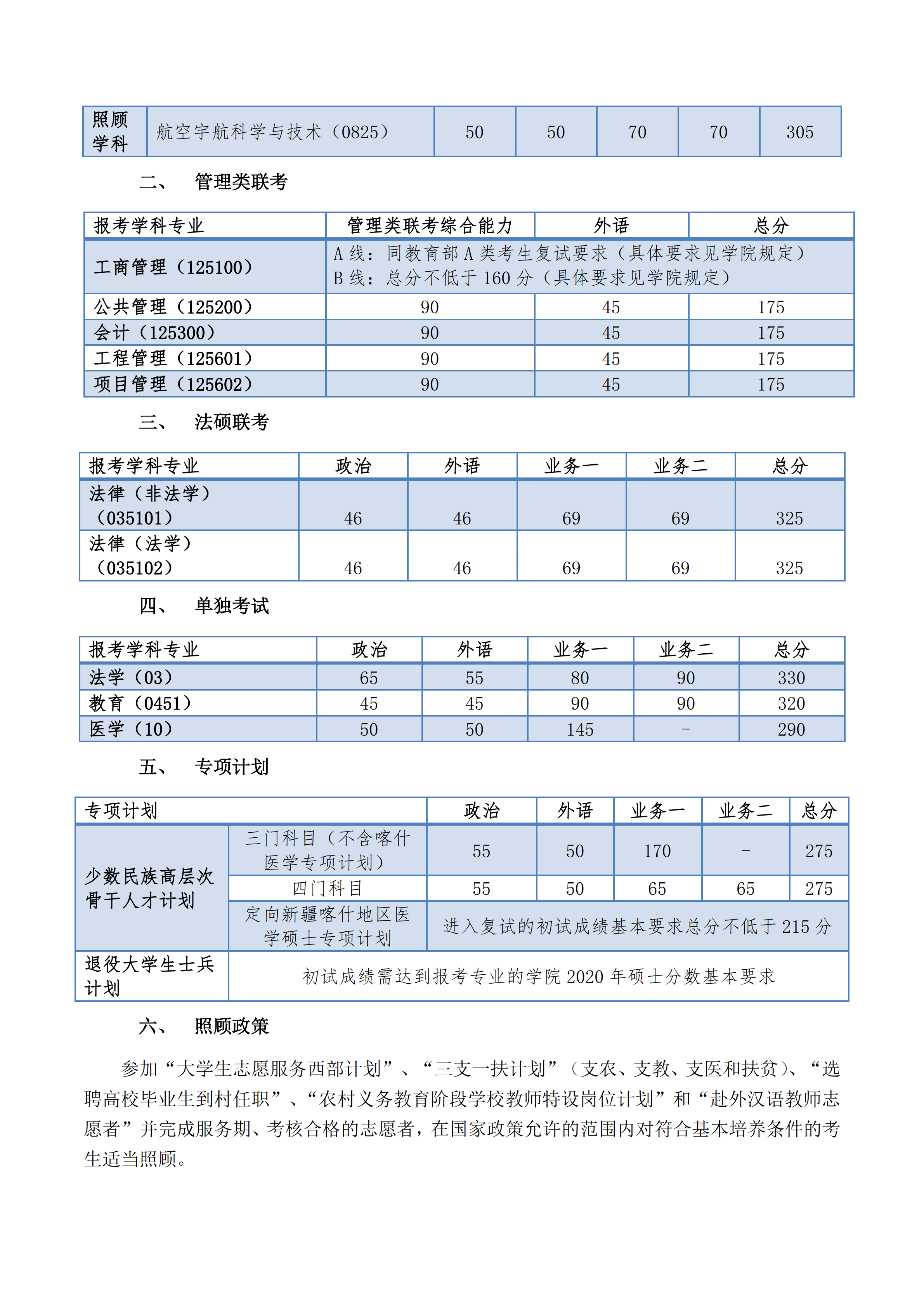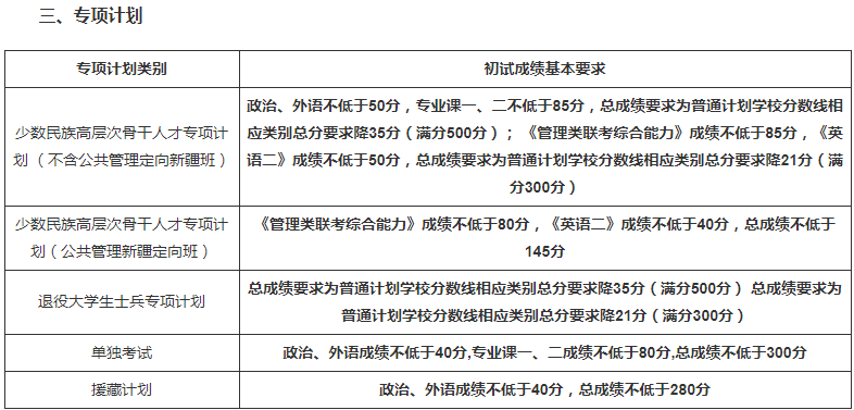 三、专项计划考生的初试成绩基本要求: