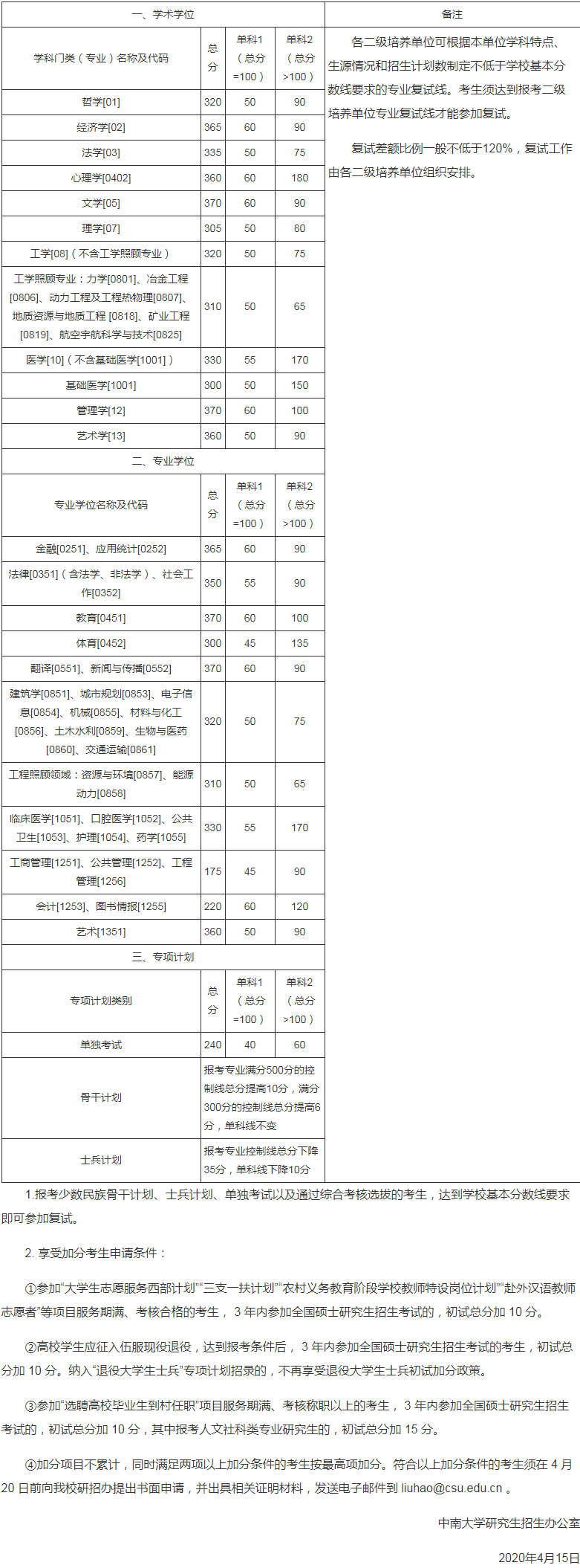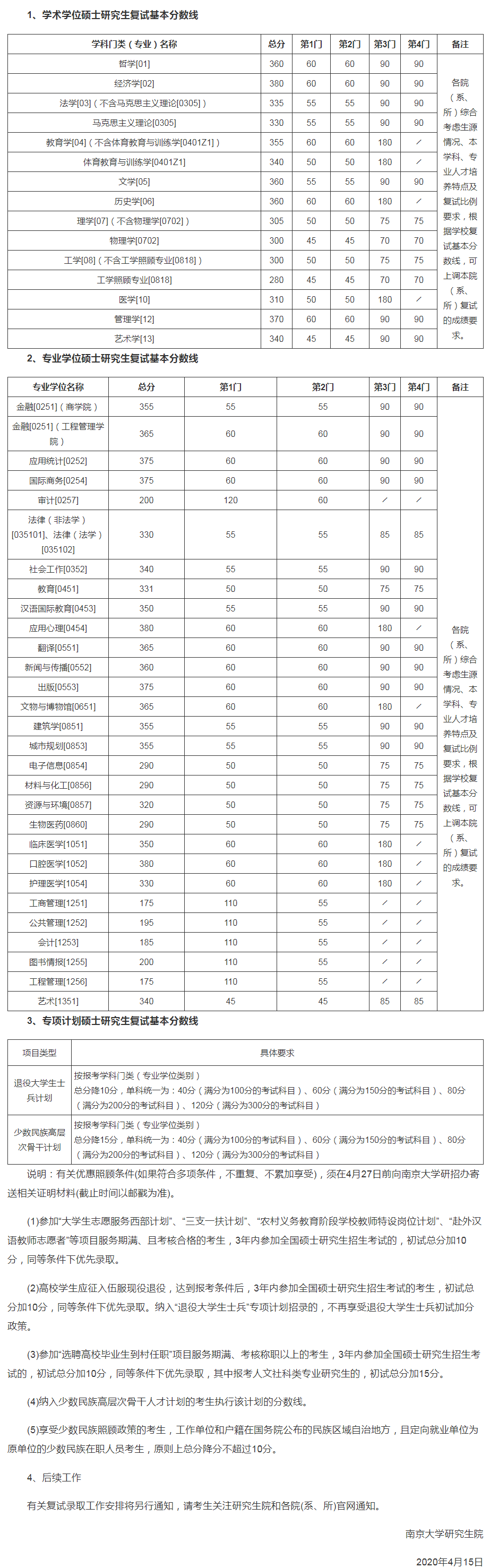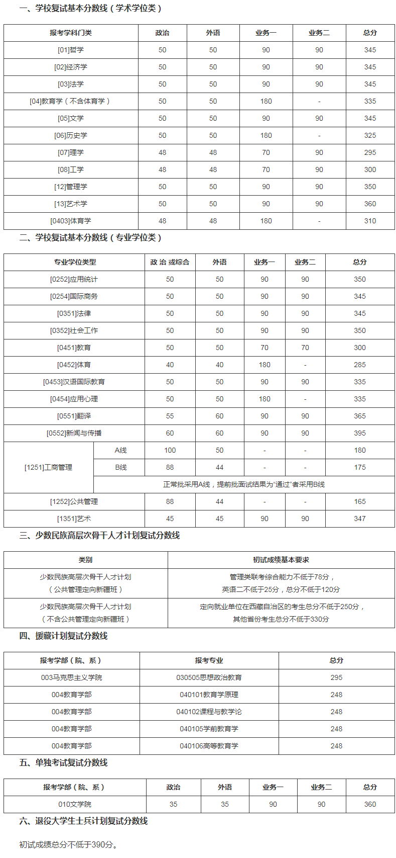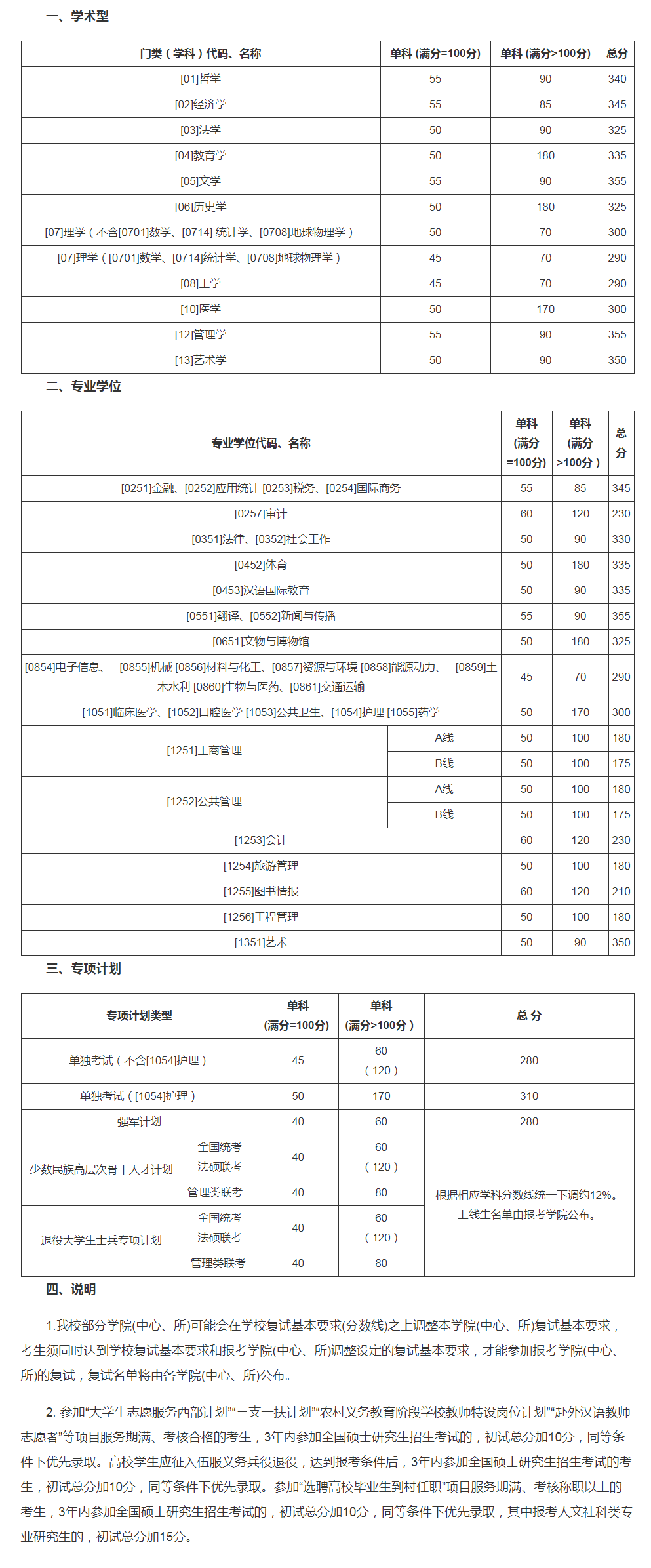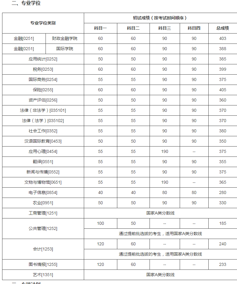 二、专项计划复试分数线(不含医学院)