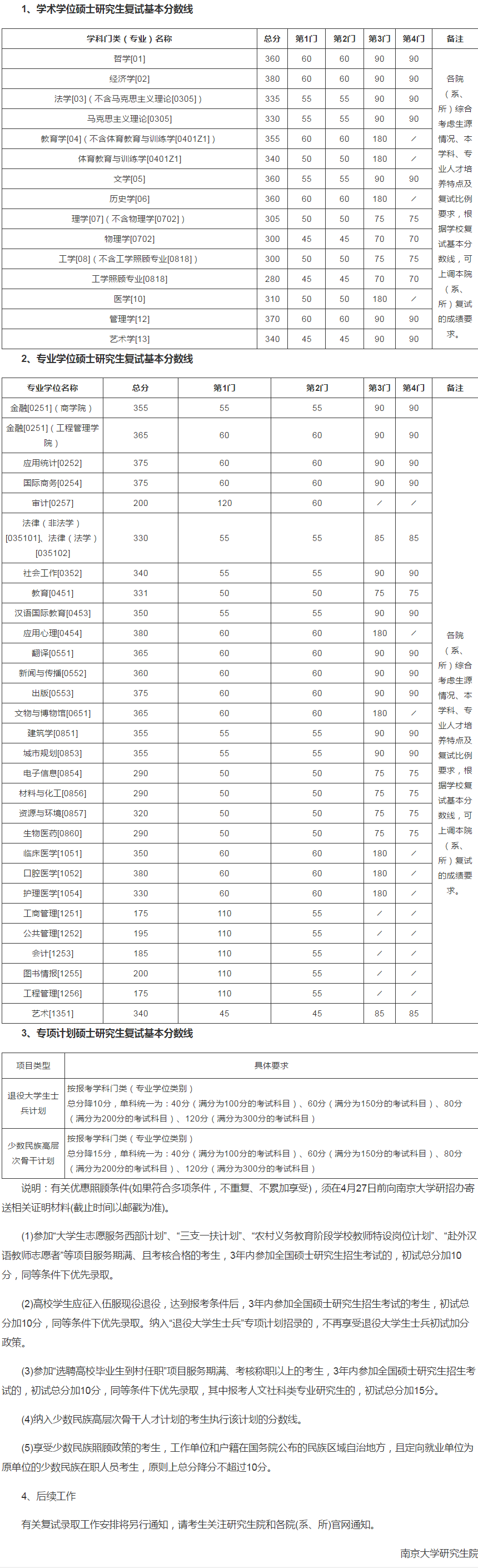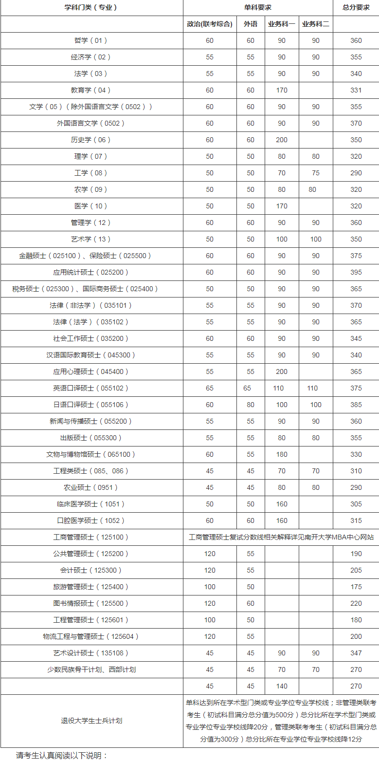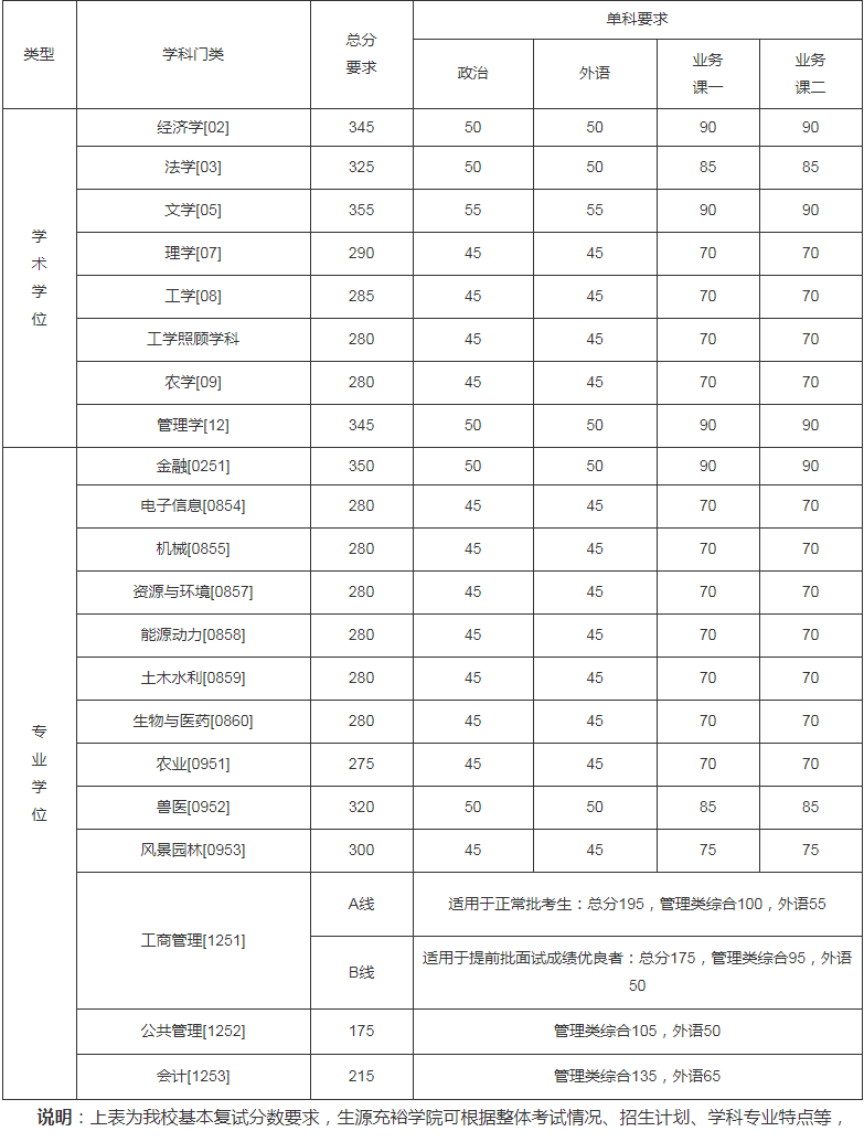 一、复试基本分数线(不含医学院)