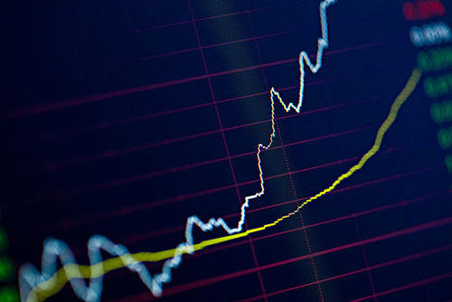 坐标图里由红绿柱状图和白黄线组成。