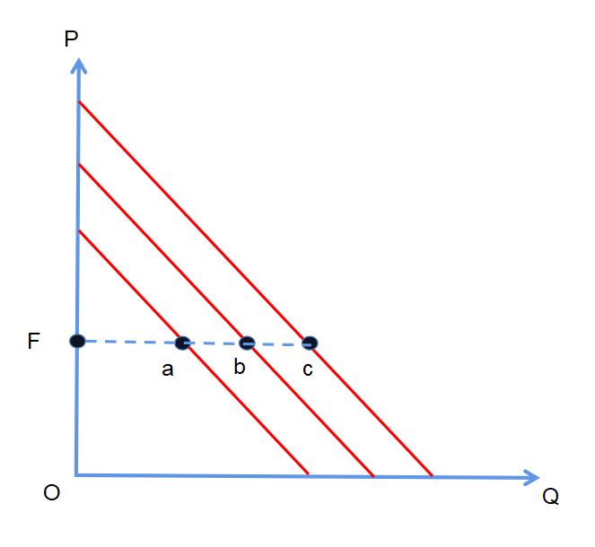 罗鹏 发表于 2020-4-20 16:07 标原点为O。 线性需求曲线时,在价格水平为F 时的点弹性为线段FO/AF。(参见《微观经济学》萨缪尔森、诺德 ...