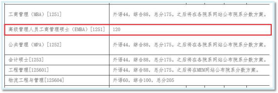 对于其他参加联考的EMBA学员来说,今年的录取分数线基本上也确定了。自从2017年统一纳入全国联考以来,绝大部分高校EMBA的录取分数线等同于MBA的分数线。